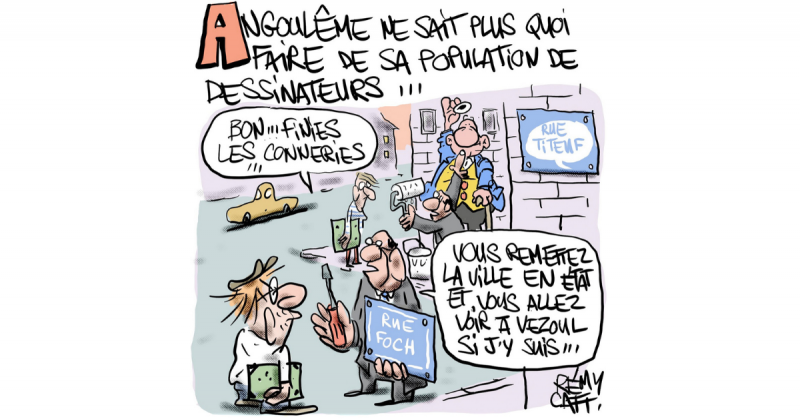 DES HOMMES EN CHAPEAU MELON distribuant nez rouges et cotillons à une rangée de chômeurs abattus, Mitterrand face à une foule de sphinx en habits de prolétaires, la grande faucheuse prenant chaque matin son service parmi les employés de France Télécom : les éditions l’Échappée font paraître, dans leur collection Action Graphique, Vu de dos – Trente ans de dessins plus que politiques, par Cardon.